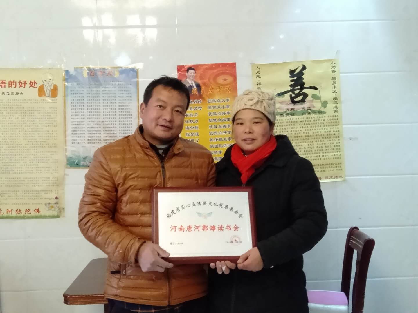 具体介绍: 2019年2月16日上午,南阳高心灵志愿服务团义工教师高银兰、王贵金应邀参加唐河县郭滩镇高心灵读书会的挂牌仪式。郭滩读书会的发起人王丽平夫妇以及读书会家人共30多人见证了此次盛会。正式挂牌之前,先有高银兰老师向读书会全体家人宣讲学习国学文化,特别是学习《道德经》的重要性和紧迫性。王贵金老师代表高心灵基金会向王丽平夫妇授牌,王丽平夫妇发心把自己家住房的二楼客厅,作为读书会学习的教室,定期组织大家学习《道德经》妙解。